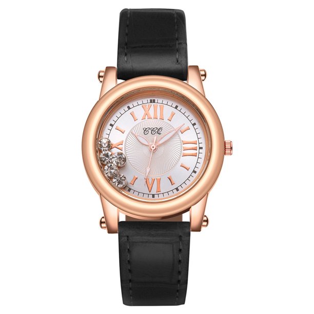 Qisiwole Womens Diamond Watches Fashion Quartz Clock Leather Strap Simple Desigreen Ladies Dress Wrist Crystal Watch For Women Deals Walmart Com